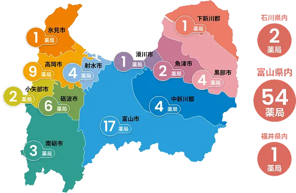 チューリップ調剤は、富山県内を中心に薬局を展開しており、それぞれの薬局がその地域に暮らす方々にとって身近で信頼される“健康の窓口”となることを目指しています。処方せん調剤に加えて、患者様の症状や生活習慣に応じた継続的な服薬支援や健康サポートも実施。